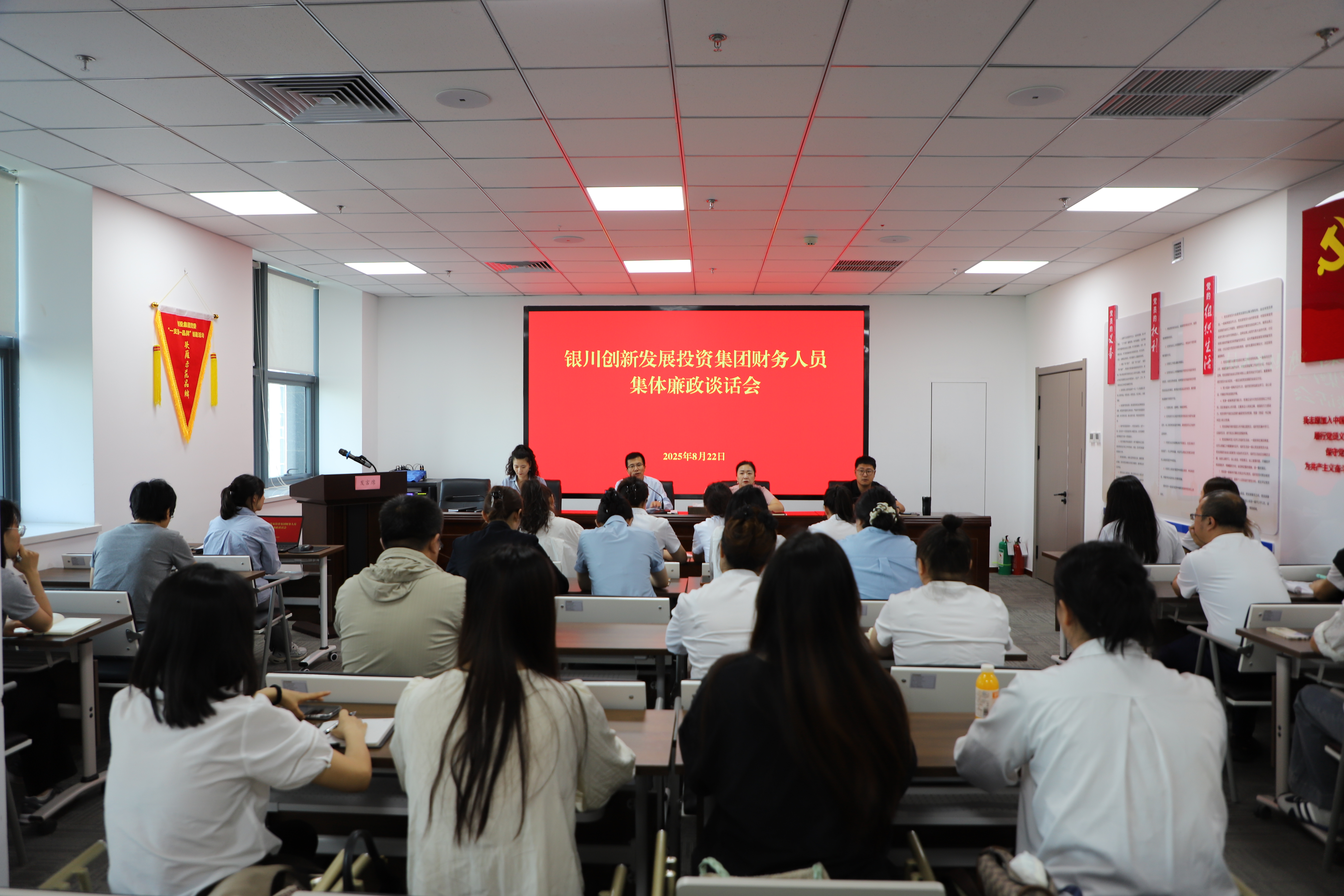 為持續(xù)鞏固深入貫徹中央八項(xiàng)規(guī)定精神學(xué)習(xí)教育成果,切實(shí)提升財(cái)務(wù)人員廉政自律意識(shí),從源頭上防范化解財(cái)務(wù)領(lǐng)域廉政風(fēng)險(xiǎn),8月22日上午,銀川創(chuàng)投集團(tuán)組織召開(kāi)財(cái)務(wù)人員集體廉政談話會(huì)。集團(tuán)黨委副書(shū)記、紀(jì)委書(shū)記王永安,黨委委員、財(cái)務(wù)總監(jiān)李海燕出席會(huì)議,集團(tuán)及各子公司財(cái)務(wù)人員共30余人參會(huì)。